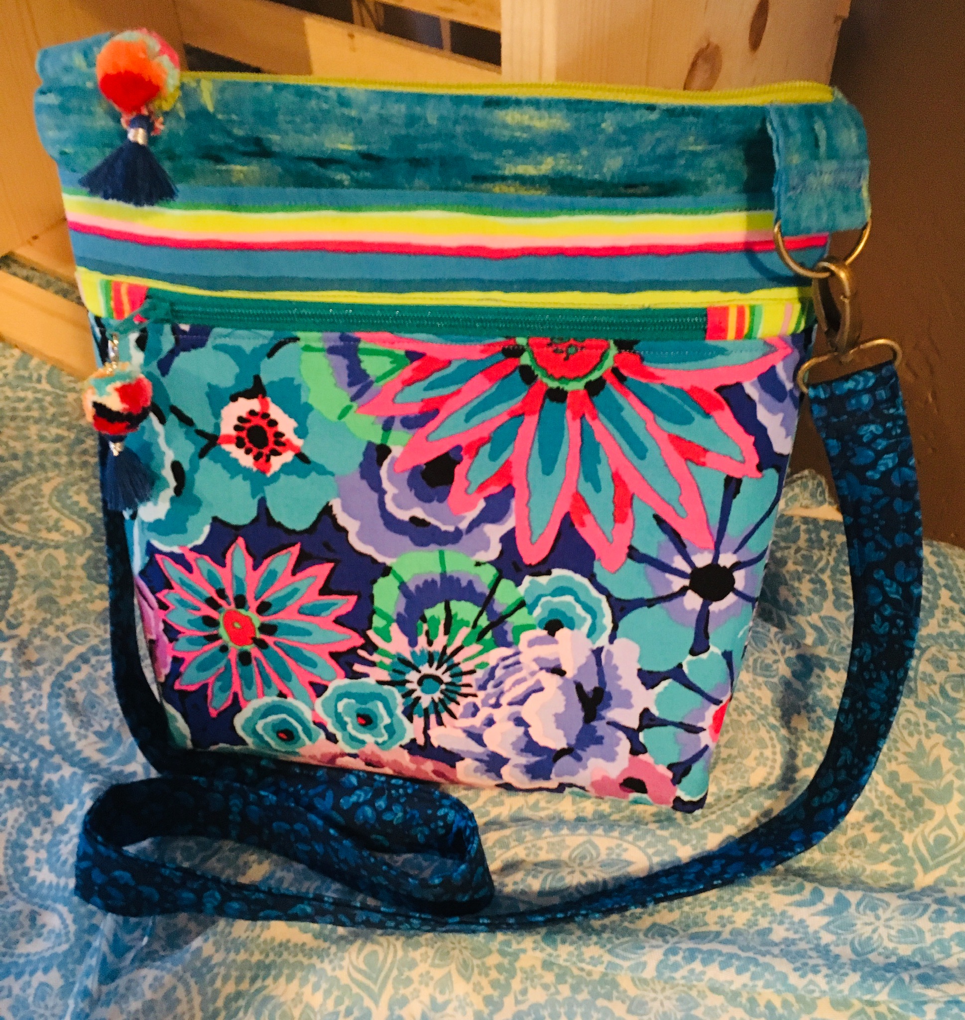 If you love pockets you will LOVE this cross body bag! With four pockets on the outside and 2 inside it has become my favorite everyday bag. Thank you Pink Sand Beach Designs for the awesome pattern.