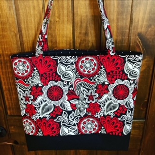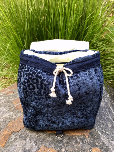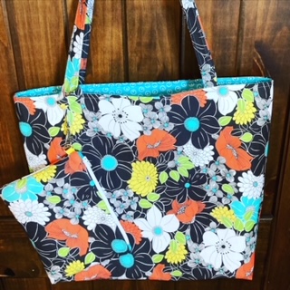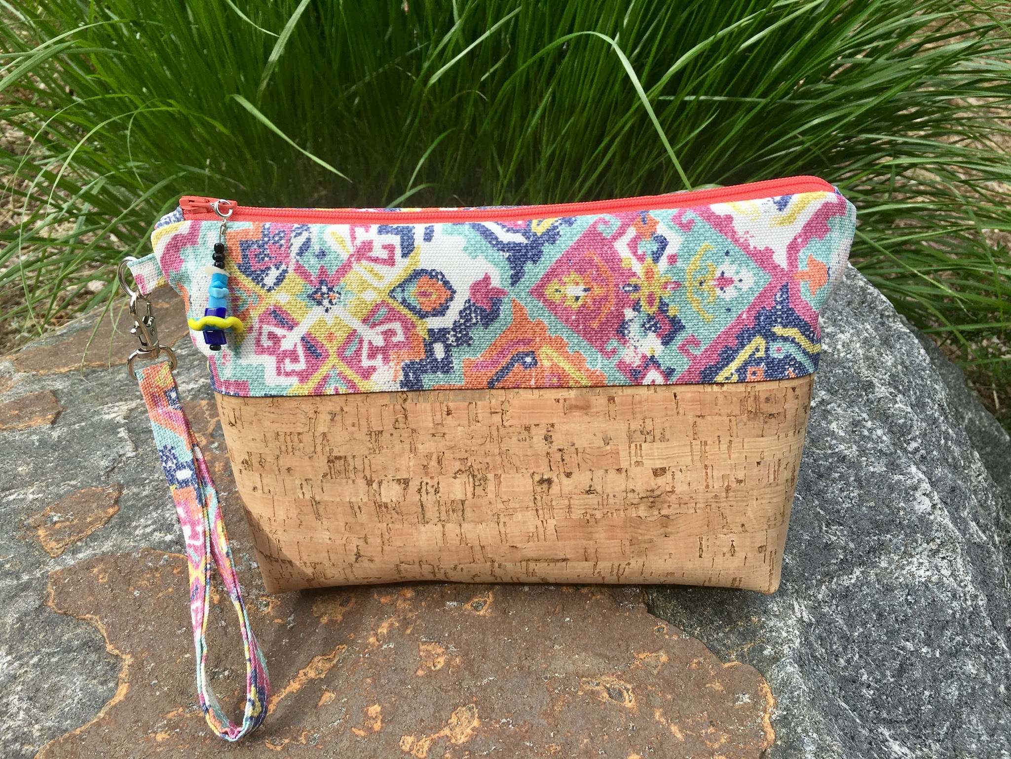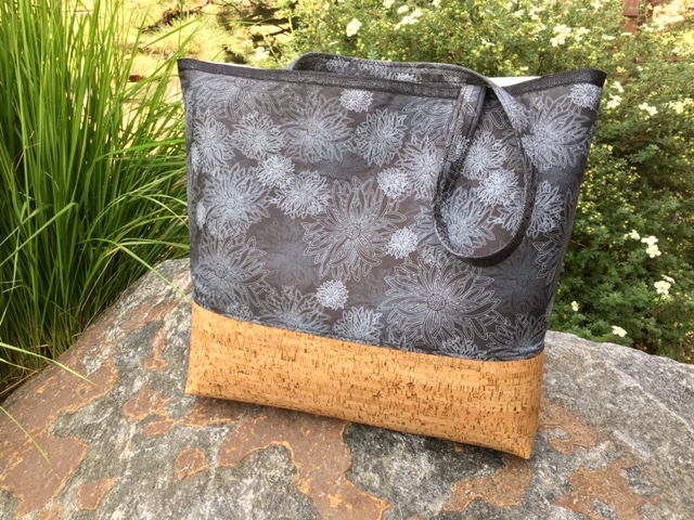 Inspired by my sister Nikki this tote is an original design that features a natural cork accent at the bottom. The tote is 20 X 20, large enough to carry your purse and essentials for any outing. With one zipper pocket and 3 slide in pockets on the inside there are plenty of places to put your important stuff. I can’t wait to make more of these fun totes!
