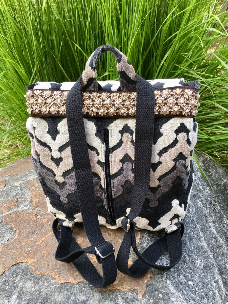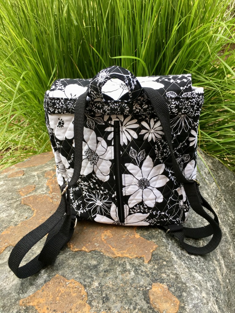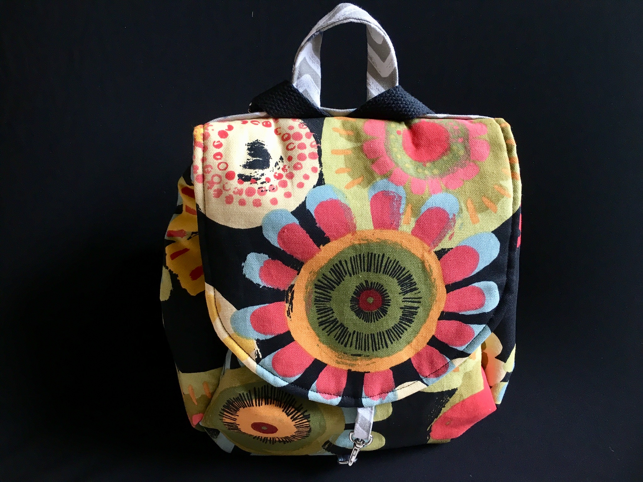 When my niece Kelsey asked me if I made a backpack style bag it inspired me to get sewing one! I found a great little pattern from cLoBird Designs that measures 11X10X5. I made a few minor tweaks to the pattern, found some fun fabric and made my first backpack purse. I am definitely going to be making more of these fun bags!